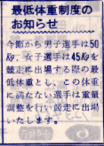 | 選手は勝つために過酷な減量をしていました。このままでは身体に悪影響を及ぼすとのことでこの制度がつくられました。 (昭和63年11月) |